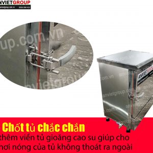Tủ giữ kín hơi với thành tủ 2 lớp inox, ở giữa là foam cách nhiệt hiệu quả, tiết kiệm điện năng khi hấp.