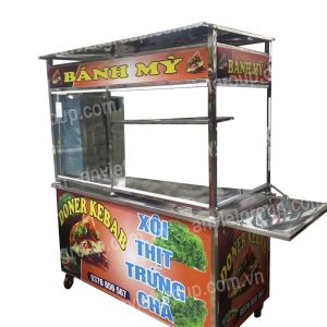 Xe bánh mì thổ nhĩ kỳ được sản xuất với chất liệu inox 304 độ bền cao. Trên xe được lắp đặt lò nướng thịt doner keab vô cùng hiện đại. Ngoài ra 1 bàn gấp mở rộng diện tích kèm theo các bộ phận như xe như mái che, bánh xe, tay đẩy… rất thông minh. Hiện nay